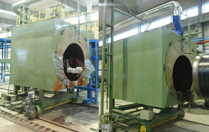 功能描述:內(nèi)減阻噴涂系統(tǒng)包含噴涂車、噴涂伸臂、噴涂系統(tǒng)(GRACO 高壓無氣噴涂泵)、噴涂前倉、轉(zhuǎn)管裝置(或轉(zhuǎn)管車)、噴涂后倉等。鋼管內(nèi)壁除銹檢測合格后,鋼管轉(zhuǎn)到內(nèi)噴涂工位,前后倉將鋼管兩端密封,鋼管旋轉(zhuǎn)。噴涂車推動(dòng)噴桿前進(jìn),電磁閥打開高壓空氣對(duì)鋼管內(nèi)壁進(jìn)行吹掃,將吸附在鋼管內(nèi)壁上的微塵及殘留的鋼砂吹走直到鋼管的末端,電磁閥關(guān)閉停止吹氣。噴涂泵啟動(dòng)待噴霧均勻后,噴涂車開始倒退將涂料均勻的噴涂到鋼管內(nèi)壁上。