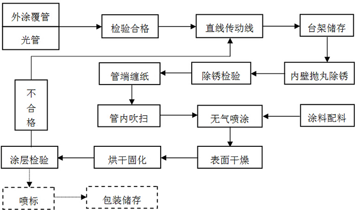 7、過(guò)渡臺(tái)架 8、鋼管內(nèi)壁噴涂設(shè)備 9、內(nèi)噴涂出管臺(tái)架 10、直線輸送輥道 11、涂層固化室 12、成品管出管臺(tái)架