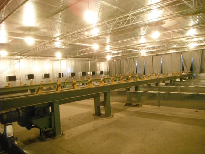 功能描述:臺(tái)架在生產(chǎn)線中用于各個(gè)工序之間,存儲(chǔ)和運(yùn)輸鋼管的作用。臺(tái)架上鋪設(shè)聚氨酯板或PE板(根據(jù)客戶要求,常規(guī)厚度15mm),保護(hù)鋼管除銹后外壁錨紋深度及涂覆后的PE層。由2條型鋼組成,可滿足鋼管承重要求,臺(tái)架設(shè)置一定的斜度,臺(tái)架立柱間隔2m左右。立柱同地基采用化學(xué)錨栓固定,擋管器固定于臺(tái)架上,撥管及上下管裝置放置于臺(tái)架兩側(cè)。