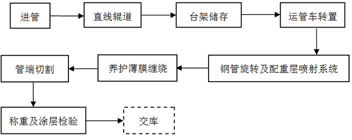 注: 1、生產(chǎn)線進管臺架 2、直線輸送輥道 3、旋轉(zhuǎn)運管車 4、水泥拋射系統(tǒng)及操控室 5、水泥回收皮帶系統(tǒng)