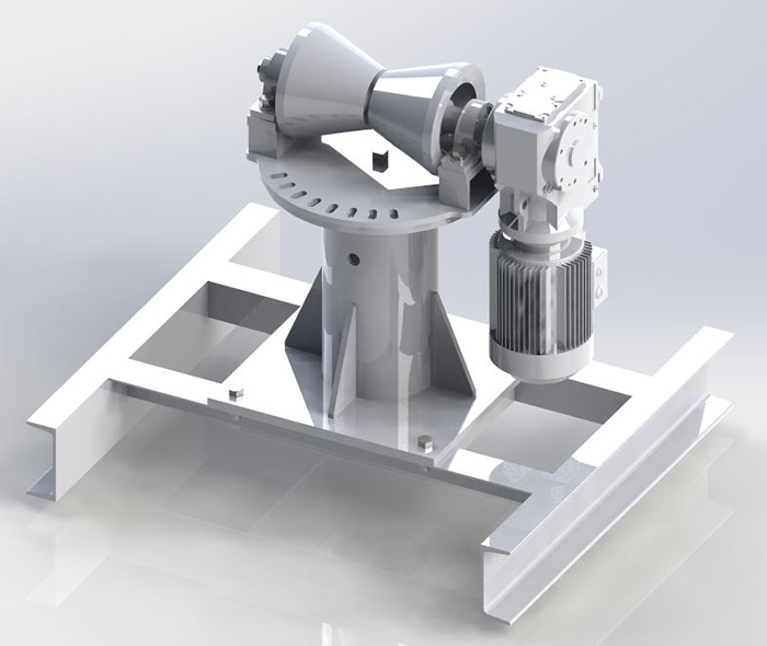 直徑較小的鋼管采用腰鼓輪一體式的螺旋輥道,安裝調(diào)整方便,角度旋轉(zhuǎn)盤一次調(diào)節(jié),螺距統(tǒng)一變化量;管底高變化量小,按鋼管管徑級別調(diào)整的功能,維修維護方便,變形量小特點。輪座下兩配合面之間配1~2mm聚四氟夾層,調(diào)整輪間距時簡捷省力;調(diào)節(jié)精度在調(diào)節(jié)輪組處均配裝刻度尺,以便于觀察。傳動線在調(diào)整完畢后,用鎖緊裝置將傳動線鎖緊。并保證調(diào)節(jié)裝置能夠取下移出。